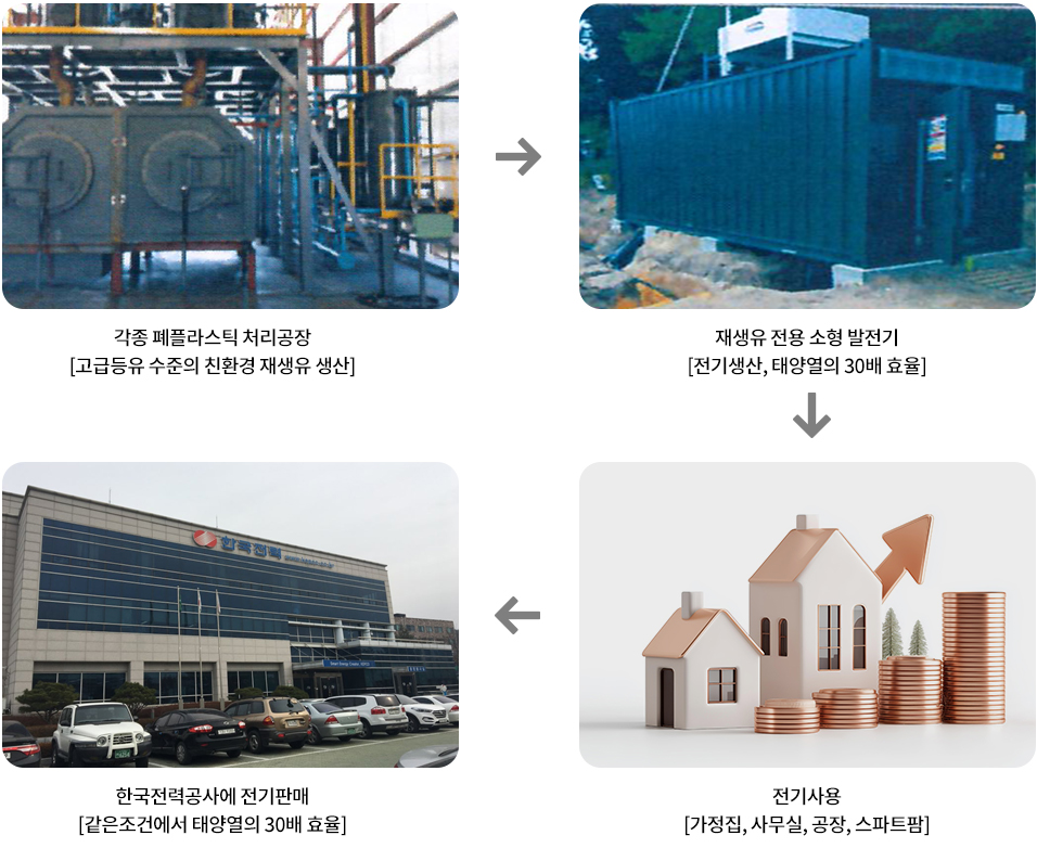 정제된 연료로 친환경 발전기를 통해 완전 연소되어